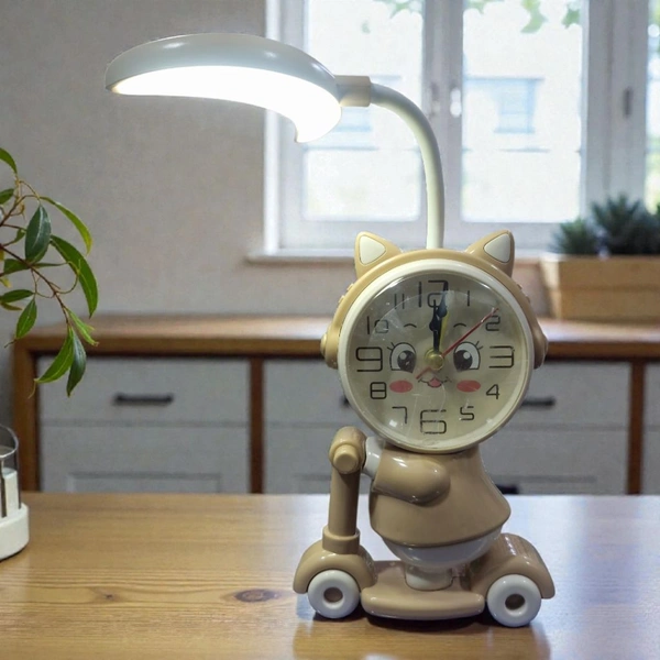 Bring charm, fun, and practicality to your desk or bedside table with the Cartoon Clock On Cycle. Exclusively available at Studymart, this delightful combination of a clock and table lamp is the perfect accessory to brighten up your space while keeping you on schedule. Designed with a playful cycle theme, it’s a perfect fusion of utility and aesthetics that appeals to all ages.