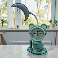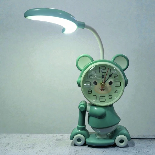 Cartoon Clock On Cycle With USB Charging Cable And Table Lamp ( Colour May Vary)
