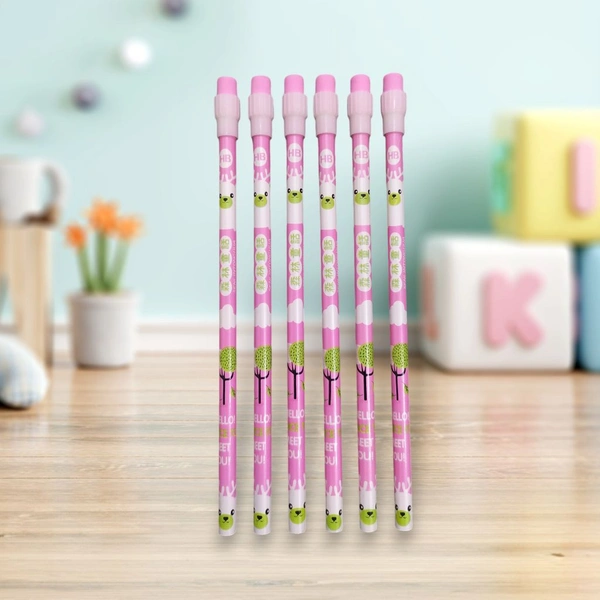 Fancy HB Wooden Pencil With Eraser Pink (6 Pc Set)