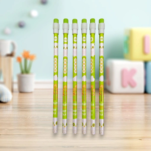 Fancy HB Wooden Pencil With Eraser Yellow (6 Pc Set)