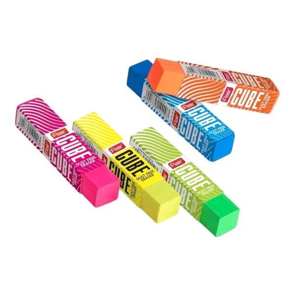 Brighten up your stationery collection with the Flair Cube Dust Free Neon Colour Erasers. Designed to combine functionality and style, these vibrant erasers are perfect for students, artists, and professionals alike. Whether you're sketching, drafting, or simply erasing mistakes, these erasers are here to make your work smoother and mess-free.