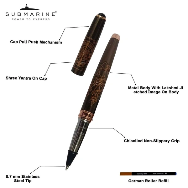 Submarine 1060 Premium, Metal Roller Pen Engraved with Lakshmi & OM Image,Perfect for Corporate Gifting